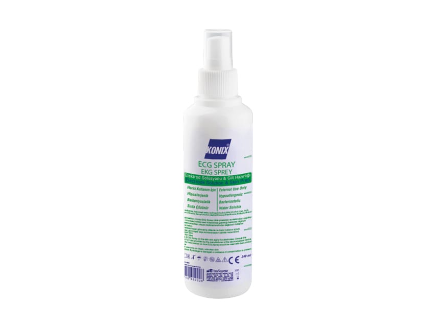 EKG Geeli näppärissä spraypulloisssa. Tarkoitettu käytettäväksi kuivien tai monikäyttöisten EKG elektrodien kanssa. Hypoallergeeninen ja hajusteeton. Toimituserä 20plo (1 laatikko)