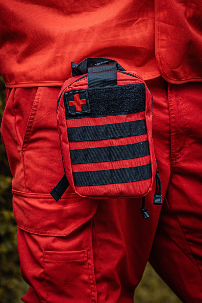 Tilava ja kestävä MOLLE IFAK tasku. Sisällä hyvin tilaa ensiapuvälineille. Pienempi vetoketjutasku pientavaralle sekä useita kuminauhapaikkoja sidostarpeille. Irtoaa pohjasta Velcron avulla. Saatavilla myös ensiapulaukuksi täytettynä.